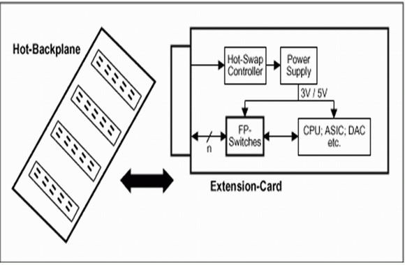除了一些典型應(yīng)用以外,例如在ATE和工業(yè)設(shè)備中作為模擬輸入的保護,這些低電壓、故障保護型開關(guān)還可以在很多其他應(yīng)用中用來簡化設(shè)計和解決板上空間不足的問題。舉例來講,為了避免切斷整個設(shè)備機箱的電源,許多應(yīng)用要求能夠向一個帶電的底板插入擴展卡。盡管可以用MAX4271這樣的熱插拔控制器來限制卡上的浪涌電流,但其信號線的保護并不容易。當你將板卡插入底板時,底板的數(shù)據(jù)總線采用5V TTL電平進行通信,這時卡上的數(shù)字IC (微控制器,ASIC等)就有可能在5V電源接通前在其輸入端“看到”5V電壓。前面已經(jīng)提到,這種情況會導(dǎo)致鎖定或板卡損壞。