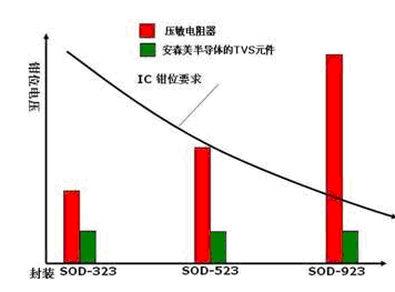 圖6:多層壓敏電阻(MLV) 與安森美半導(dǎo)體的TVS硅芯片技術(shù)發(fā)展趨勢(shì)對(duì)比