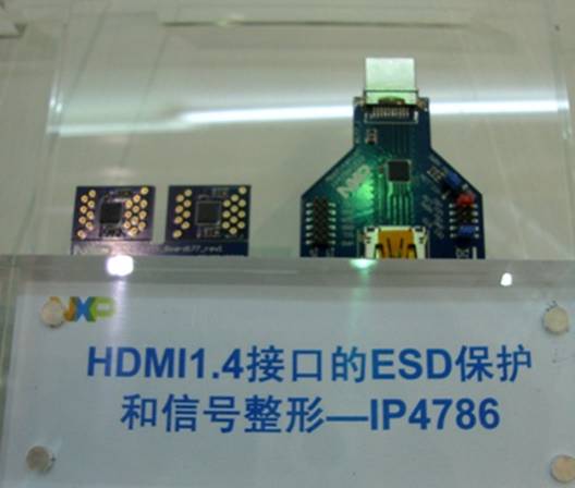HDM11.4接口允許同時傳送兩路1080p全高清視頻信號,為以后的3D全高清顯示奠定了基礎。IP4786是第一個支持HDMI1.4的ESD保護的小型化封裝IC,其最大的亮點是采用了最新的濾波技術,一般情況下,HDMI在100歐時阻抗在±15,采用新的濾波技術后,在100歐時阻抗在±5~8之間,將為設計工程師在設計3D動畫這類高速信號傳輸時提供了很大的空間。據高先生透露,目前國內已經有客戶在用這款產品做Design。