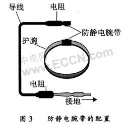 (4)操作者在接觸電子產品時必須戴防靜電手腕帶,并要求戴腕帶的操作人員每天上、下午上班前各測試一次,以保證腕帶與人體的良好接觸,腕帶電阻1 MΩ;