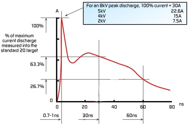 圖1、ESD發生器模擬的典型8KV的ESD脈沖。