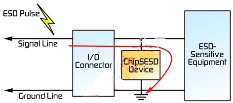 如圖2所示:SESD元件用于轉移具有潛在破壞性的電荷,使其遠離敏感的電路,并幫助保護系統免于故障。通過將硅器件的優勢與傳統的表面貼裝技術(SMT)無源器件封裝配置相結合,它們比傳統的半導體封裝的ESD器件更容易安裝和維修。