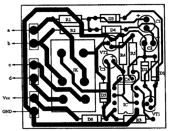 555一定要選用功耗很低的CMOS時基電路。VT1、VT2用9014、C1815型小功率塑封晶體管,要求電流放大倍數β>100.D1~D5均用1N4148型硅開關二極管,D6用于電源接反保護,可選用1N4001~1N4007型硅整流二極管。R1~R5均用0.5 W五色環金屬膜電阻。C1、C2用優質鋁電解電容,C3要選用漏電小、精度高的鉭電解電容,否則將影響延時精度。JK選用12 V/7 A雙聯型繼電器(左、右聲道各用一組),如JZC-22F.