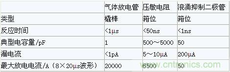 [member]4、氣體放電管與其它浪涌抑制器件參數比較