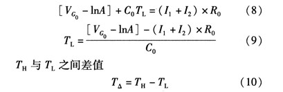 如果忽略由溫度變化引起lnT項變化對式(2)的影響,dVBE/dT可近似等于常數C0。常溫下C0約為-2 mV/K。為了簡化計算,則PN結關于溫度的變化方程可近似線性為![]()