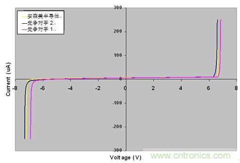 圖2:三種ESD器件的DC特性對比。