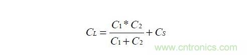 圖示的C1,C2就是為晶振工作在并聯諧振狀態下得到加載電容CL的電容。關于最優的加載電容CL的計算公式為: