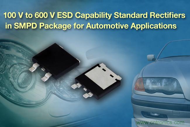 【導讀】近日,Vishay Intertechnology, Inc.宣布,推出三款通過AEC-Q101認證,電壓100V至600V的新款標準整流器。這三款整流器采用薄型SMPD封裝,具有ESD功能,電流等級從10A到20A。為了滿足空間受限應用的需求,它們采用了SMPD(TO-263AC)封裝,這種封裝具有1.7mm的極低高度,占位兼容D2PAK。