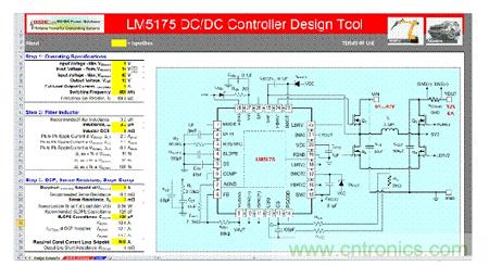 圖3. 步驟1到3分別是指運行技術規格、電感器篩選和電流感測。這個電路原理圖是根據輸入的以及計算出來的組件值自動組裝而成。