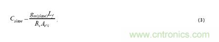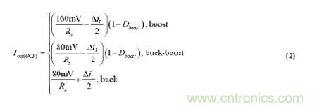 下一步,斜坡補償獲得感測到的信號,并且在降壓模式中,增加一個等于電感器斜升的斜坡分量,或者在升壓模式中增加一個與電感器漸降相等的斜坡分量。方程式3中給出了斜坡電容[4] 的計算方式