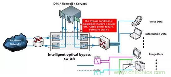 OBP旁路保護(hù)系統(tǒng): 光旁路保護(hù)系統(tǒng)(Optical Bypass Protection system)是一種應(yīng)用于光纖通信領(lǐng)域并能自動(dòng)繞過故障網(wǎng)絡(luò)節(jié)點(diǎn)的智能光路切換系統(tǒng),能自動(dòng)識別網(wǎng)絡(luò)節(jié)點(diǎn)供電狀態(tài)及光信號輸出狀態(tài),當(dāng)本地光設(shè)備出現(xiàn)故障(包括電源中斷、硬件或軟件故障等)后,能夠瞬間切換到旁通光路,通訊線路將繞過本地設(shè)備(即故障節(jié)點(diǎn)),從而能避免由于該故障節(jié)點(diǎn)而發(fā)生全阻障礙,保證系統(tǒng)連通正常。