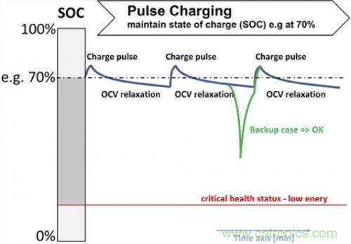 注:第2-5步補償自放電效應并通過這種涓流充電使儲能元件保持健康狀態,同時還維持更長的時間。