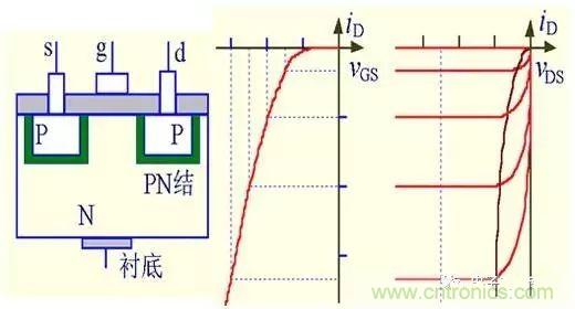 (1) VGS=0時,不管VDS極性如何,其中總有一個PN結反偏,所以不存在導電溝道。