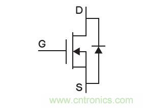 圖1所示是一個N溝道功率MOSFET的典型符號。本征體漏二極管由p-body和n-drift兩個區(qū)組成,如圖1所示,體漏二極管與MOSFET的導電溝道并聯(lián)。
