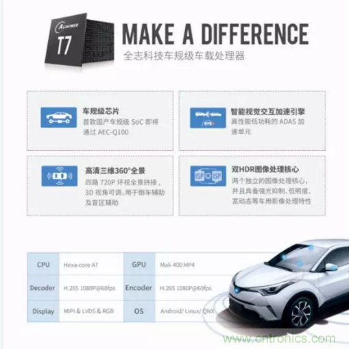 全志科技是國內智能應用處理器SoC和模擬芯片設計廠商之一,專注于智能音視頻的相關產品,其SoC應用于平板電腦、智慧家居、VR、運動相機、OTT盒子等。全志科技車聯網事業部成立于2014年,是基于車載電子發展到智能聯網時代專門成立的。當時全志科技推出了專門針對汽車的T3芯片,在后裝市場及部分前裝市場均表現不俗,尤其在后裝車機市場有非常高的占有率。隨后在2017年,全志科技推出了國內SoC芯片廠家中的首款車規級芯片T7,這標志著全志科技開始全方位大力進軍車機的前裝市場。在2019年底、2020年初,全志科技還將推出高規格的前裝車規級芯片。