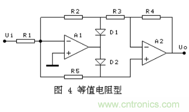 其它幾種,有的在D2導(dǎo)通的半周內(nèi),通過(guò)A2的復(fù)合實(shí)現(xiàn)A1的負(fù)反饋,對(duì)有些運(yùn)放會(huì)出現(xiàn)自激. 有的兩個(gè)半波的輸入阻抗不相等,對(duì)信號(hào)源要求較高。