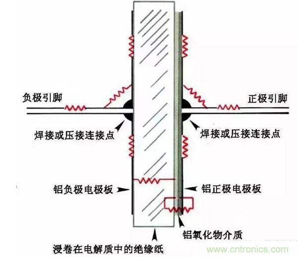 鋁電解電容還包括存在于濕的電解質(zhì)溶液的電阻、以及含有高電平“水”的鋁氧化物(水合氧化鋁)中的電阻等。