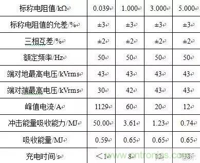 因此規定當充電時,功率單元驅動電路的工作電壓從零上升到額定值得時間不小于0.5s,整體充電時間控制在10s左右。基于這個限制條件并結合表2,本工程充電電阻可選擇3000,650kJ。