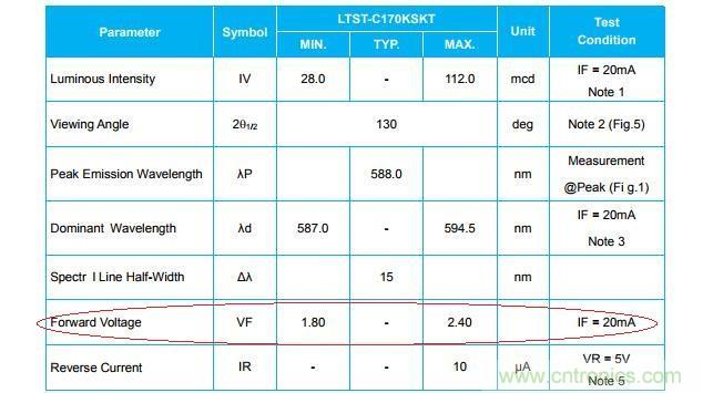 (2)再看一個LED燈珠(Φ5直徑)的手冊