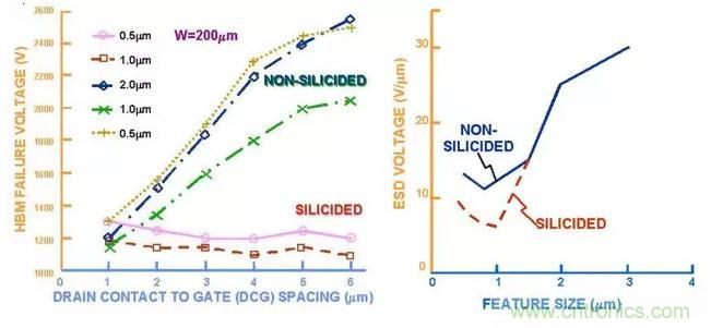 隨著摩爾定律的進一步縮小,器件尺寸越來越小,結深越來越淺,GOX越來越薄,所以靜電擊穿越來越容易,而且在Advance制程里面,Silicide引入也會讓靜電擊穿變得更加尖銳,所以幾乎所有的芯片設計都要克服靜電擊穿問題。