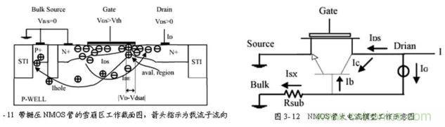 1)NMOS我們通常都能看到比較好的Snap-back特性,但是實際上PMOS很難有snap-back特性,而且PMOS耐ESD的特性普遍比NMOS好,這個道理同HCI效應,主要是因為NMOS擊穿時候產生的是電子,遷移率很大,所以Isub很大容易使得Bulk/Source正向導通,但是PMOS就難咯。