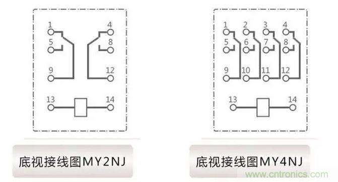 而4對觸點的中間繼電器與2對觸點的基本一致,除了多出來2對點: