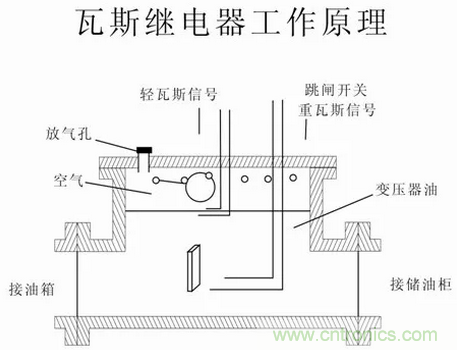 重瓦斯是由于變壓器內部發生嚴重故障時,產生強烈的瓦斯氣體,使變壓器的內部壓力突增,產生很大的油流向油枕方向沖擊,因油流沖擊擋板,擋板克服彈簧的阻力,帶動磁鐵向干簧觸點方向移動,使干簧觸點接通,跳閘回路接通斷路器跳閘。