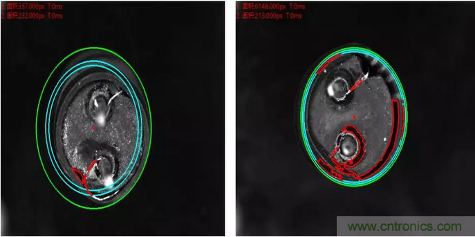 底部檢測不良品(磁芯破損)分析圖NG▼