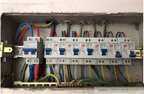 空氣開關作為總開關安裝在最前面,后面除了照明回路都使用漏電開關的安裝方式優點很明顯:首先某個回路漏電時只是這個回路跳閘,不會跳總閘,不影響我們使用;其次由于它每次都是跳的相應的分開關,所以很容易找到哪個回路的電路出現故障,故障排查方便;最后它也不會誤動作;