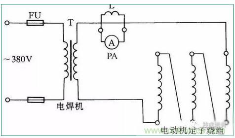 通入電動機繞組線圈的電流可由電焊機來調節(jié),但在烘干時應注意通入電動機的電流不能超過電動機本身額定電流太多,并且注意觀察電動機和電焊機溫度都不能升得過高。線路參見圖31。