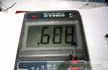 2、如果三極管的紅表筆接其中一個管腳,而用黑表筆測其它兩個管腳都導(dǎo)通有電壓顯示,那么此三極管為NPN三極管,且紅表筆所接的腳為三極管的基極B,用上述方法測試時其中萬用表的黑表筆接其中一個腳的電壓稍高,那么此腳為三極管的發(fā)射極E,剩下的電壓偏低的那個管腳為集電極C。