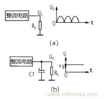 圖 2(a)為整流電路的輸出電路。交流電壓經(jīng)整流 電路之后輸出的是單向脈動性直流電,即電路中的 UO。