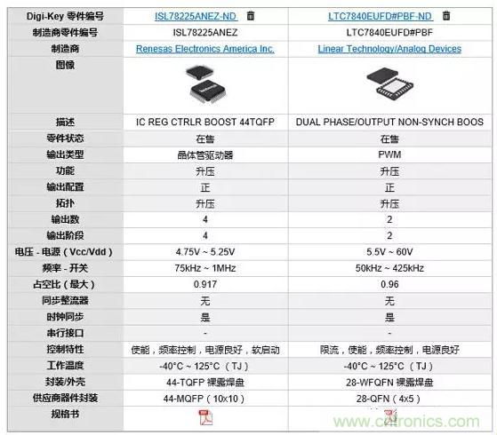 圖5:ISL78225ANEZ與LTC7840EUFD#PBF芯片的參數比較
