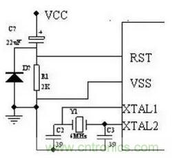 單片機(jī)利用外部12MHZ晶振構(gòu)成振蕩電路作為時(shí)鐘源,時(shí)鐘電路的原理如下圖。