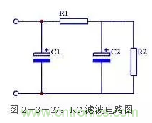 使用兩個電容和一個電阻組成RC濾波電路,又稱π型RC濾波電路。見圖2-3-27所示。這種濾波電路由于增加了一個電阻R1,使交流紋波都分擔在R1上。R1和C2越大濾波效果越好,但R1過大又會造成壓降過大,減小了輸出電壓。一般R1應(yīng)遠小于R2。