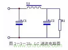 與RC濾波電路相對的還有一種LC濾波電路,這種濾波電路綜合了電容濾波電路紋波小和電感濾波電路帶負載能力強的優(yōu)點。其電路圖見圖2-3-28。