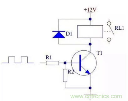 當(dāng)晶體管用來(lái)驅(qū)動(dòng)繼電器時(shí),推薦用NPN三極管。具體電路如下:
