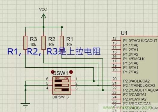 另外,當要求這個節點為高電平時,這個節點和地之間的阻抗一般非常大,如100K歐的阻抗,當上拉一個10K歐的電阻,這個點分得的電壓為100K歐/(100K+10K)*5V=4.5V,這樣也可以拉到高電平。而當要求這個節點為低電平時,只要把它和地連接就可以了,電源和地之間有一個10K偶的電阻,這樣就不會短路了。當低電平時,電源和地之間有一個負載形成的回路,有時候這個節點會再串接一個電阻,因為電流流向阻抗低的地方,所以電流會通過與電源相連的電阻流向地,而不是流向這個與節點相連的電阻,因為這個節點連接的電阻阻抗高,所以低電平時這個點的電勢就是低電平。