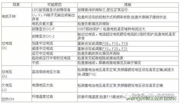 雖然每家的故障代碼可能會有差異,但是一般離不開過流(OC),過載(OL),過壓(OU),欠壓(LU),過熱(OH)等著幾類,理論這些可以根據手冊的要求來操作,流程都是傻瓜式的。實際一般用戶能處理的,就是確保輸入電壓正常,電機連接線正常,電機絕緣沒有問題,電機三相平衡等,然后調整一下加減速時間等簡單處理,下邊說一些手冊上沒有的故障,這些故障你見過嗎,知道如何處理嗎,一起來看看。
