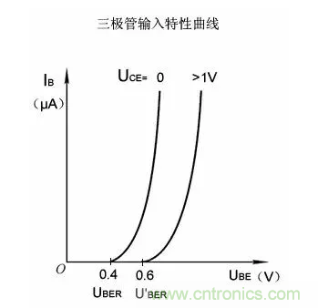 集-射極電壓UCE為某特定值時,基極電流IB與基-射電壓UBE的關系曲線。
