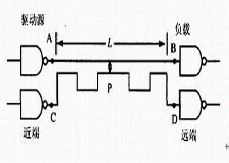 串擾是指一個信號在傳輸通道上傳輸時,因電磁耦合而對相鄰的傳輸線產(chǎn)生不期望的影響,在被干擾信號表現(xiàn)為被注入了一定的耦合電壓和耦合電流。過大的串擾可能引起電路的誤觸發(fā),導(dǎo)致系統(tǒng)無法正常工作。如圖1的電路,AB之間的門電路稱為干擾源網(wǎng)絡(luò)(Aggressor Line),CD之間的門電路稱為被干擾源網(wǎng)絡(luò)(Victim Line)。只要干擾源一改變狀態(tài),我們就可以觀察到受害源處的脈沖串擾。