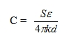 (7)上式中,電容C的單位為法拉,ε為介電常數(在真空中為1),S為帶電物體與參照物體之間電力線互相照射的面積(與電場垂直,單位米2),在國際單位制中k = 9×109牛頓•米2/庫侖2,d為帶電物體到參照物的有效距離(單位米)。