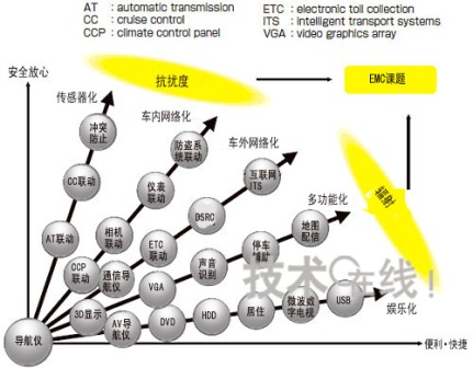 圖2:車載導航儀的多媒體化在兼顧“貼心服務”和“愉悅心情”的同時增加功能。EMC成為重要課題。