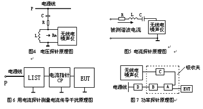 國際曾有人建議對小型電子設備采用類似于CLSPRl4一l(對應的我國國家標準是GB4343—l《家用和類似用途電動、電熱器具、電動工具以及類似電路的無線電干擾特性的測量方法和允許值》)中所提供的吸收鉗(或稱為功率探針、鐵氧體鉗)方法來測試EUT對外的輻射功率。利用吸收鉗可以測量5MHz—300MHz的傳導干擾功率。采用此法的前提是EUT尺寸較小,其輻射到空間的能量主要是通過EUT的電源線等逸出的。因此,對這部分能量的測量可以用一個環繞電源線的吸收裝置來實現。這個吸收裝置便被稱為吸收鉗。這個方法的優點是簡便易行,對環境要求不高,在屏蔽室里便可進行,而且測試結果有很好的重復性和可比性。電壓、電流傳導干擾可分別由電壓探針和電流探針測出。圖4、圖5分別為電壓探針和電流探針原理圖。圖6為電流探針測量電流傳導干擾原理圖。功率探針原理見圖7。