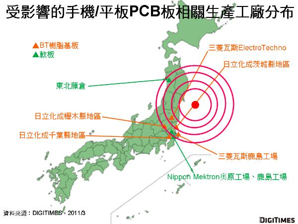 在手機/平板用PCB、IC載板材料BT樹脂等相關零組件方面,包含三菱瓦斯化學、日立化成、藤倉、Nippon Mektron等日廠旗下工廠受地震影響作業(yè)中斷,停止生產(chǎn)。