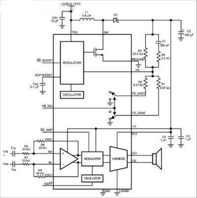 LM48511是一個(gè)擴(kuò)頻調(diào)制式D類(lèi)音頻放大器,內(nèi)部集成了一個(gè)內(nèi)置式升壓穩(wěn)壓器,可把電壓提升至7V,從而增強(qiáng)放大器的輸出功率和音頻聲壓級(jí)。此外,該升壓穩(wěn)壓器即使在電池衰減的情況下也可使放大器維持一個(gè)固定的輸出水平。