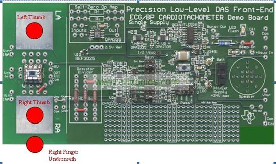 圖 2 精密型低電平 ECG 心率計電路板的正面圖