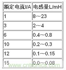 表1 電感量范圍與額定電流的關系[4
