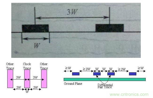 3W原則是指多個(gè)高速信號線長距離走線的時(shí)候,其間距應(yīng)該遵循3W原則,例如時(shí)鐘線,差分線,視頻、音頻信號線,復(fù)位信號線及其他系統(tǒng)關(guān)鍵電路需要遵循3W原則,而并不是板上所有的布線都要強(qiáng)制符合3W原則。