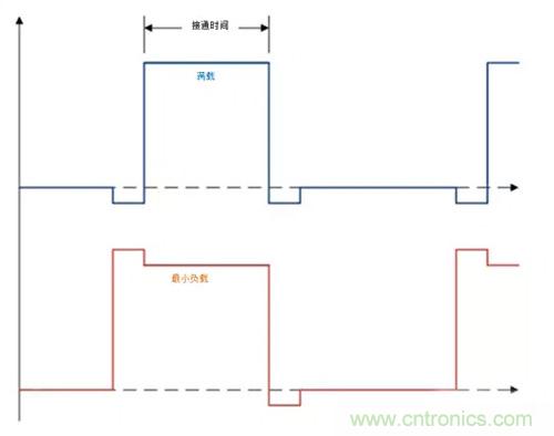 圖1:滿載和無負(fù)載時(shí)的脈沖寬度
